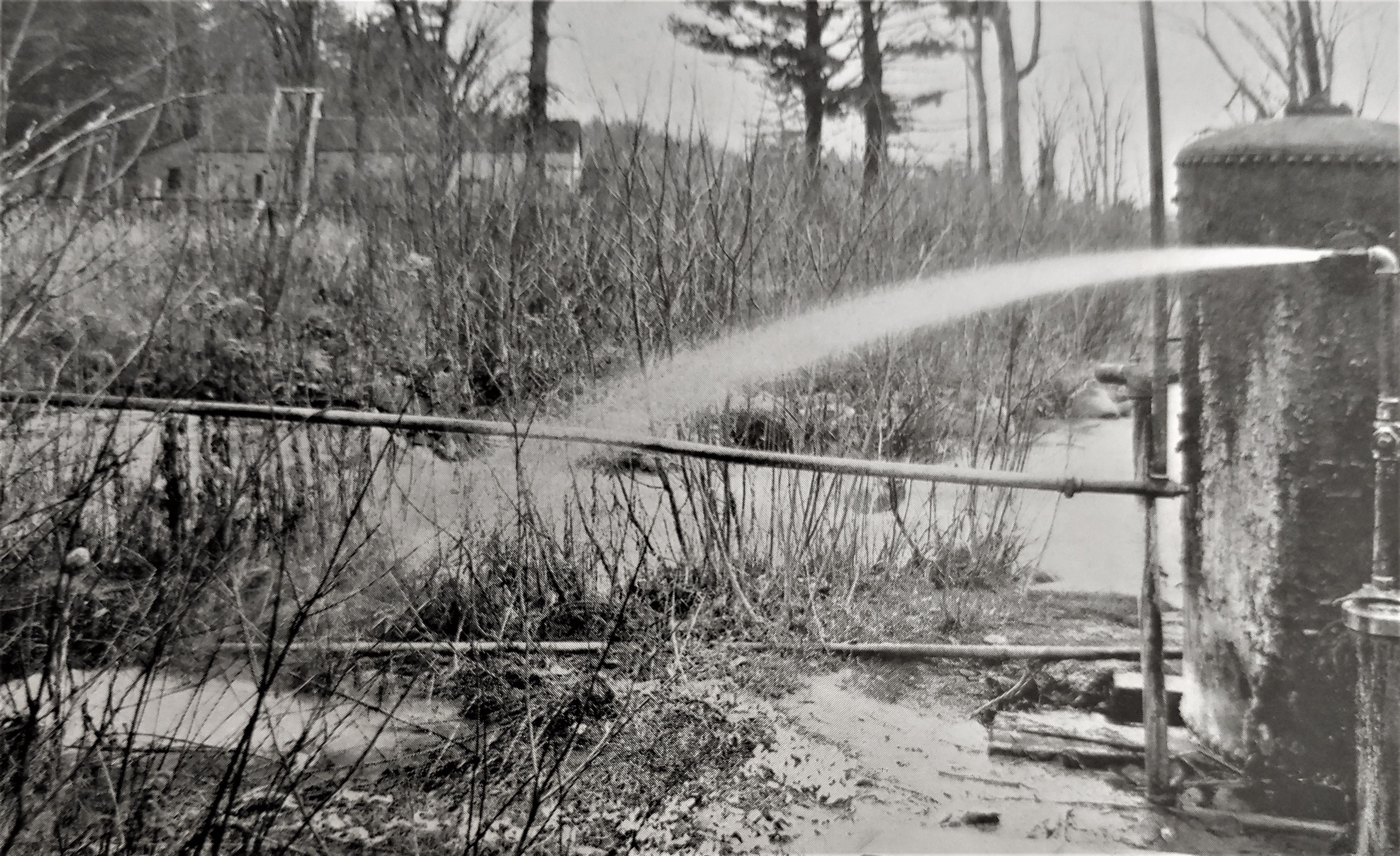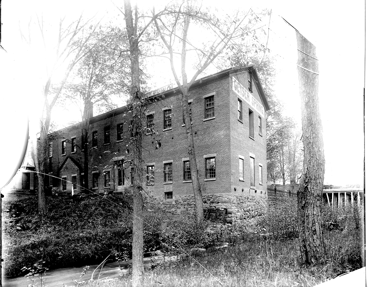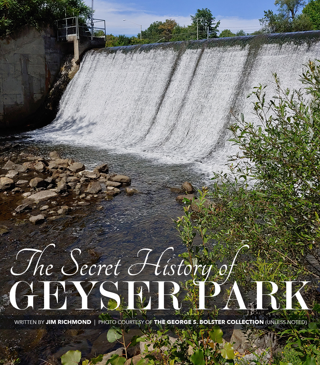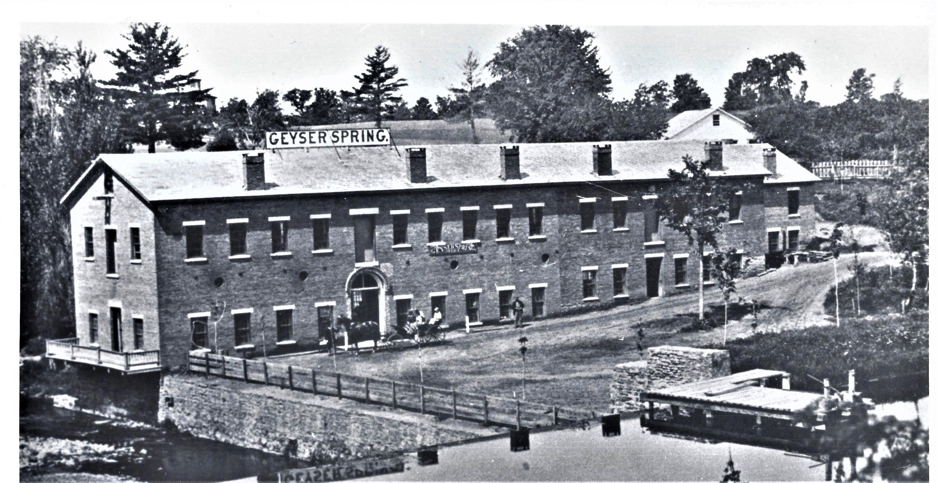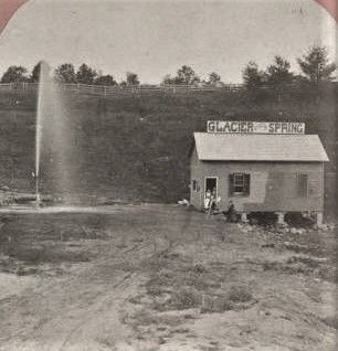 Almost overnight, the future of Robert Ellis’ 1792 land purchase was forever changed. Within a month the mineral water was spouting upwards to a height of 20 feet, immediately drawing large numbers of curiosity seekers from Saratoga Springs, two miles to the north. The three men lost no time in promoting both the curiosity of the spouting spring and the water itself, bottling and marketing it under the names of “Geyser Spring” and “Geyser Water.” Manufacturing of nuts and bolts were now a thing of the past, the factory building signage now proudly trumpeting its new mission. Other springs appeared, drilled by Button. One of the most famous, the Champion Spouting Spring, was located on the property of Gibbs’ gristmill on the grounds of today’s Saratoga Performing Arts Center, entertaining travelers on the railroad as they passed by.