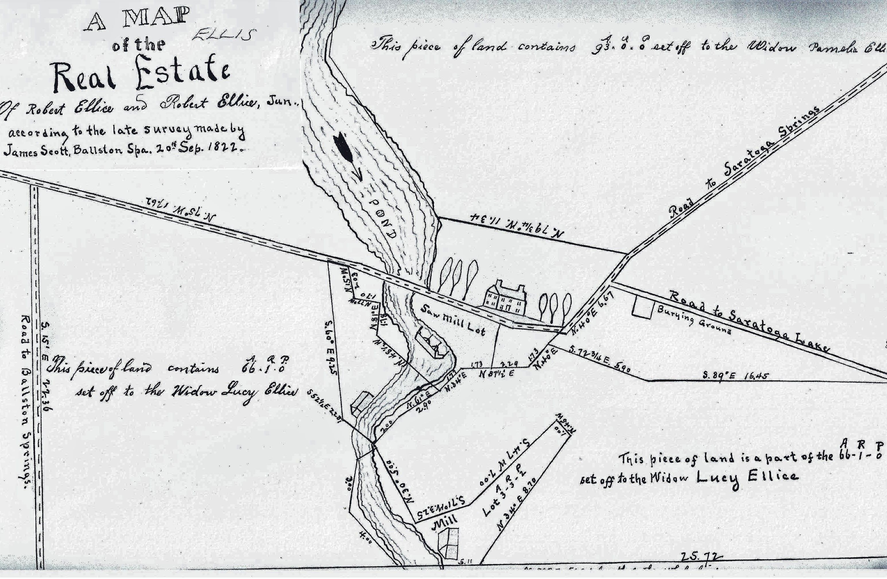 European settlement of the area began in earnest in 1792 when Robert Ellis, Sr. purchased and developed a 600-acre parcel of land in the 16th allotment of the Kayderosseras Patent, today extending from South Road in the park northward to West Avenue. Ellis, with a keen eye for property, recognized that his purchase was prime real estate for two of the most significant economic activities in early rural America; farming and milling. Ignoring the mineral springs oozing out of the ground, Ellis concentrated on developing a large farm and supplementing his income by constructing a dam and a sawmill. After 220 years, the modern version of the dam remains in the same location holding back the waters of Geyser Creek. The sawmill has long since disappeared.