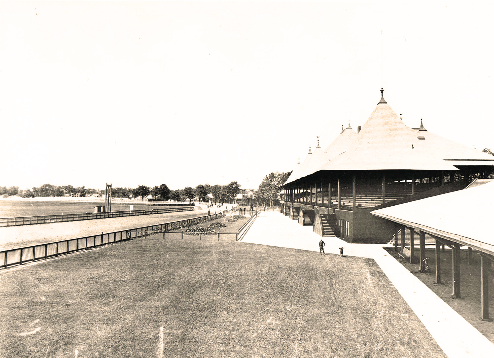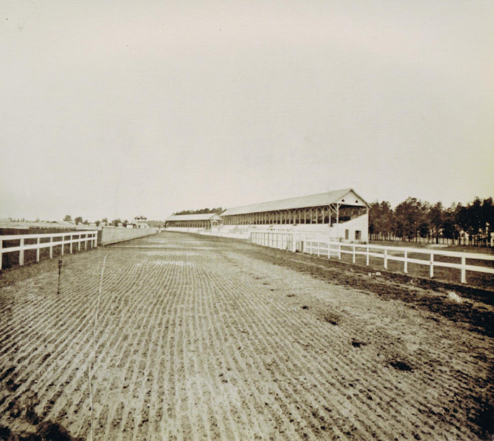 This image of the track in the early days of operation shows the original grandstands and racing surface before they would be reconstructed in 1901.