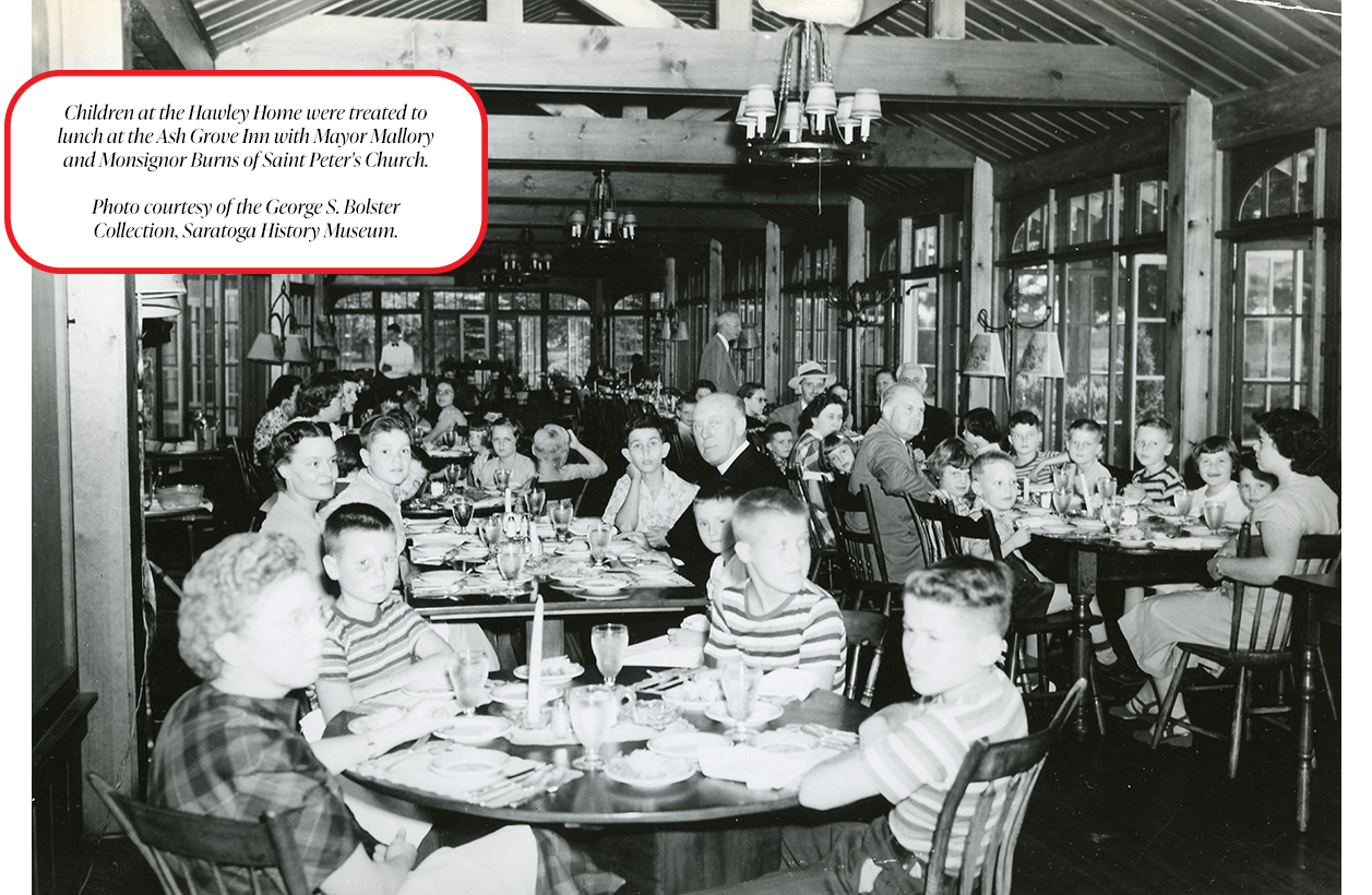 Browsing through the comprehensive Hawley Home scrapbooks housed in the library's Saratoga Room, I was warmed by the generous outpouring of support our community extended to the children who lived there. Skidmore students were assigned a resident to read to and mentor regularly. Restaurants such as Siros, Pennell's, and the Ash Grove invited the children for yearly dinners. Jockeys from The Track made summer visits complete with gifts and treats. Other civic groups sponsored outings to Kaydeross Amusement Park. What particularly touched me to read about were the Tam O' Shanter restaurant employees, a once popular Italian restaurant in Ballston Spa. The employees saved their extra tips for an entire year to treat the children to a picnic and day at Lake George's Storytown Amusement Park (now known as The Great Escape.)