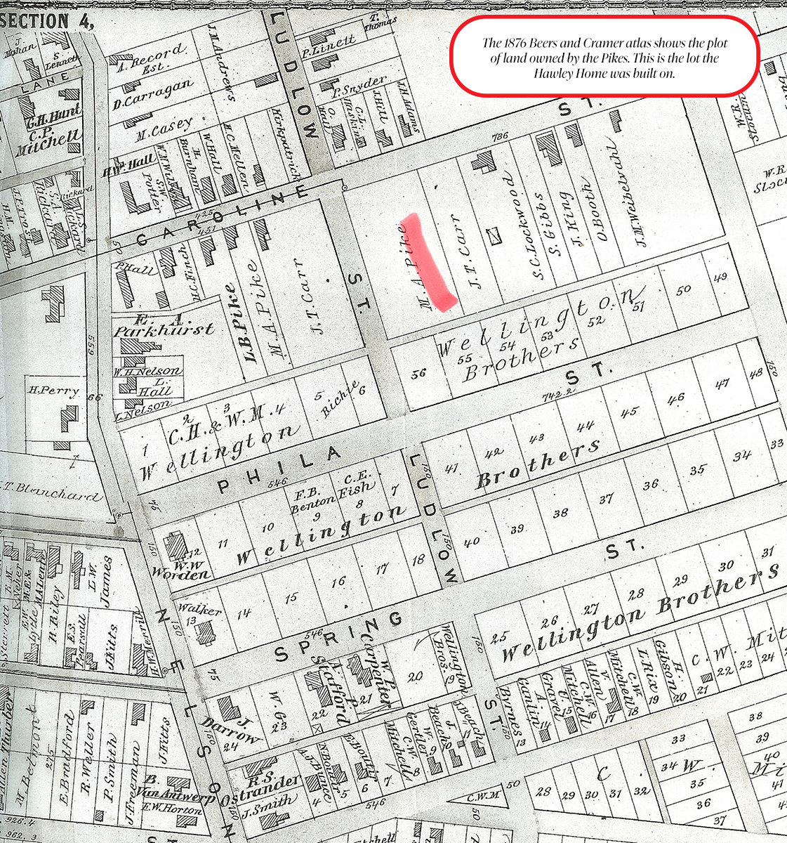 In 1852, Matthias Pike and his family moved to Saratoga from Fort Ann, where he had served as justice of the peace and superintendent of the poor. Two years later, he and his wife Sarah purchased a large plot of land on Ludlow Street. It sat undeveloped for nearly 50 years. After the couple's deaths, Lemuel Pike, Matthias' son, sold the family property in 1901 to the Saratoga Home for Children (later named the Hawley Home for Children). One would like to believe that Lemuel followed in his father's footsteps of caring for the poor and collaborated with Reverend Bostwick Hawley to convey the property to create a safe sanctuary for needy children.