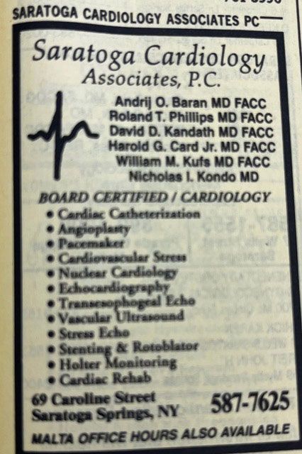 A 1999 phone book ad for the cardiologist office at 69 Caroline St.