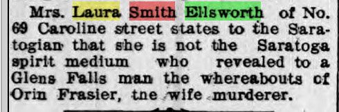 Laura Smith Ellsworth was a well-known medium who at one time resided at 69 Caroline Street.
