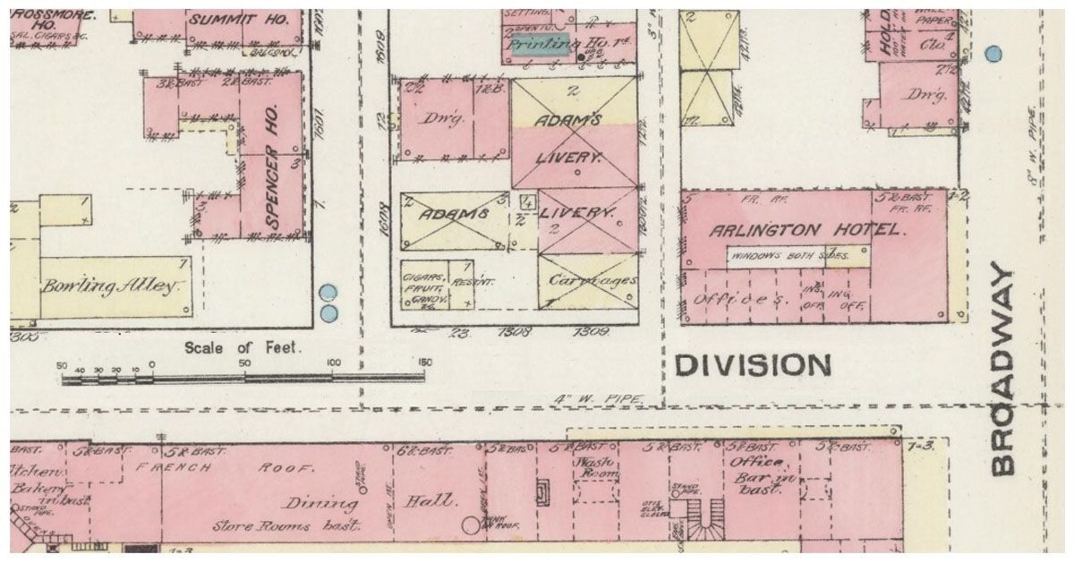 Sanborn Fire Insurance Map of 1884, detailing the location of