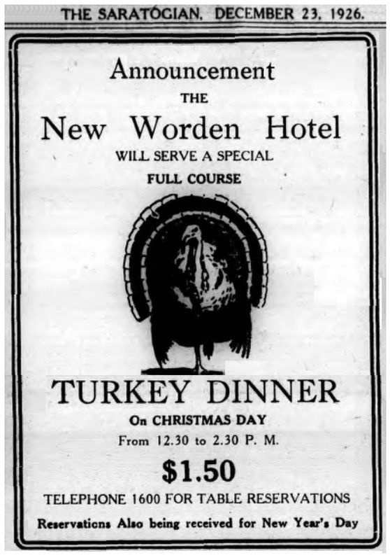 Christmas Dinner at “The Worden” was an annual tradition for decades; the terms Worden Hotel, Worden House and Worden Inn were used interchangeably through the years.