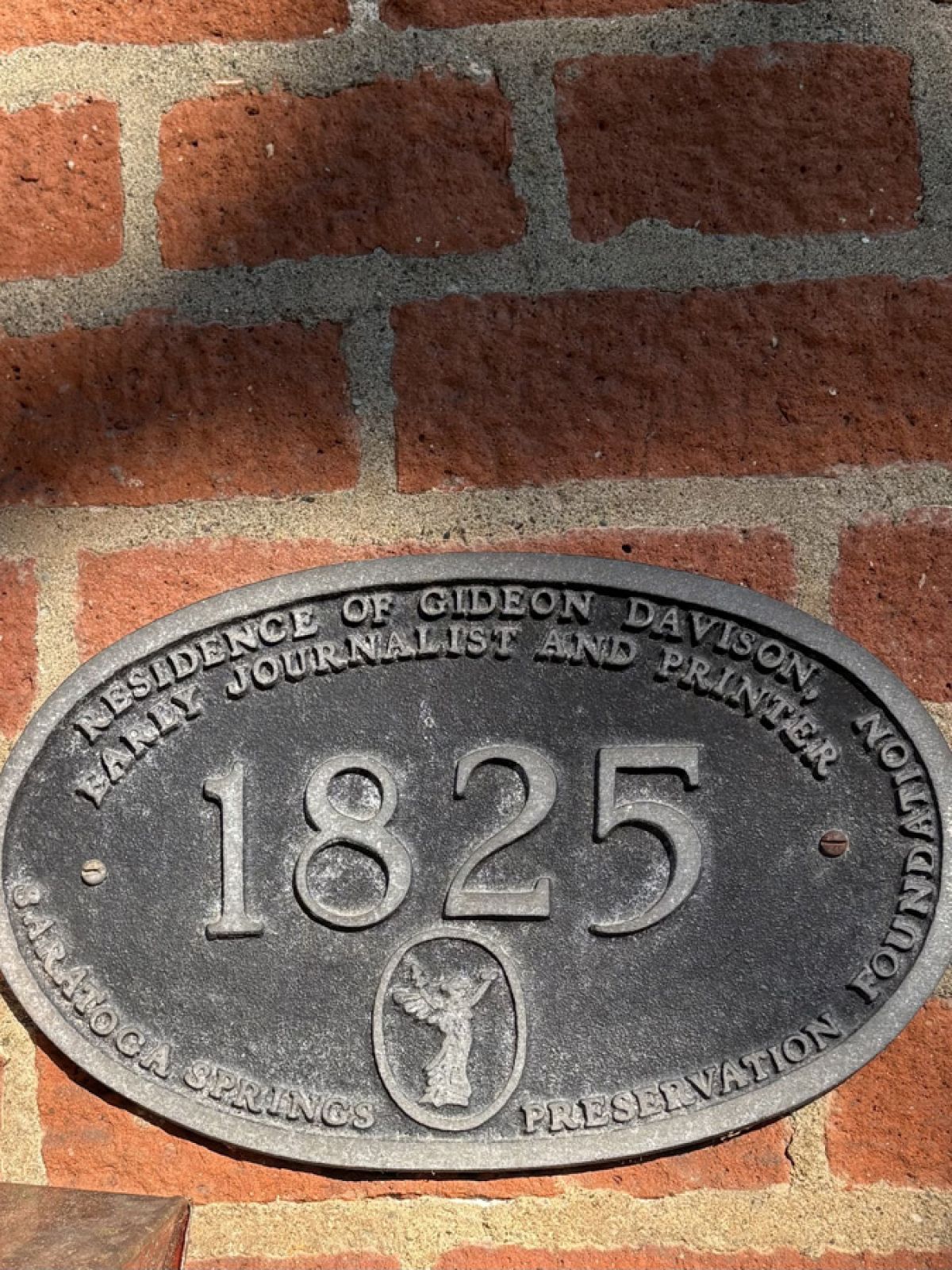 Saratoga Springs Preservation plaque verifying the 1825 date of the building.