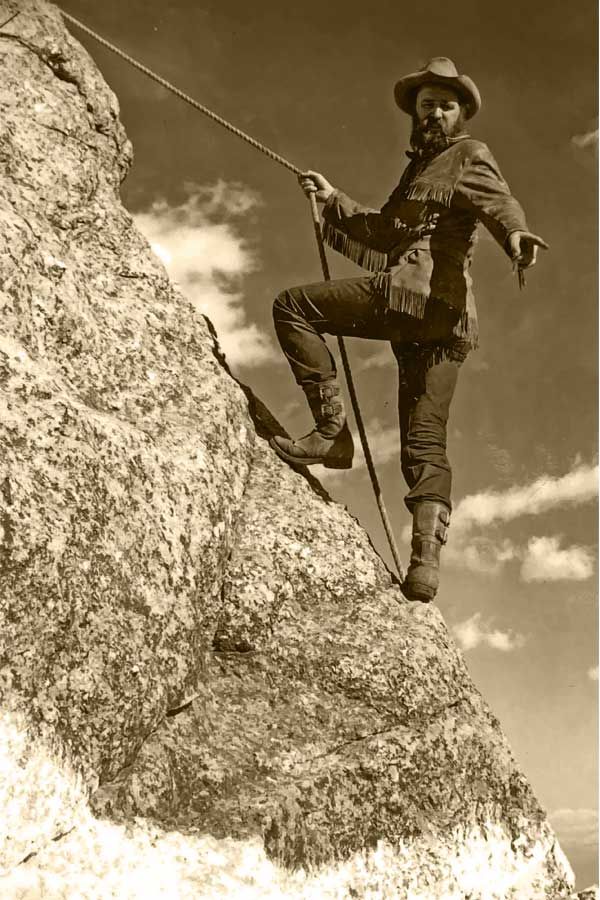 In 1939, Lakota Chief Henry Standing Bear and a group of Native American elders invited the Connecticut sculptor to carve a mountain memorial honoring their revered leader, Crazy Horse. They couldn’t offer Korczak any monetary compensation or equipment. Legally, they couldn’t even offer him the mountain they’d chosen overlooking the Black Hills, sacred lands of their people. Korczak would need to purchase the mountain and equipment, clear and create nearly six miles of rough road, build himself a home, and fashion 741 wooden steps from the base of the 600-foot mountain to its peak at 6,740 feet above sea level. All this in addition to designing, engineering, and transforming a mountain into a 3D sculpture of Crazy Horse mounted on his steed, pointing to the sacred lands “where (his) people lie buried.”