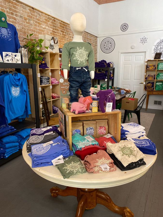 Betsy’s work helps children who can't get meals outside of school and it does this by selling clothing, stickers, and bags with custom mandalas on them, designed by Betsy herself.