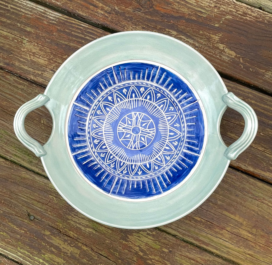 Symmetrical hand-carved designs on mugs, plates, bowls, serving dishes, and more) evoke feelings of unity, order, and appreciation - nourishing the soul.