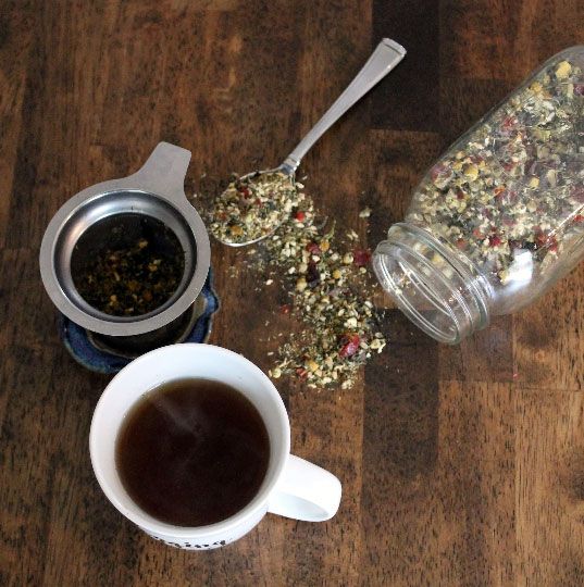 Old Wisdom Wellness’ most popular tea, After Dinner Chai, has no caffeine and is made from freshly-crushed cardamon pods, rooibos, ginger, cinnamon, cloves, dandelions, and anise seeds. Another customer favorite, the Rest & Recover blend, was created for a patient recovering from cancer, and includes ginger, nettle, rosehips, Tulsi, and chamomile.