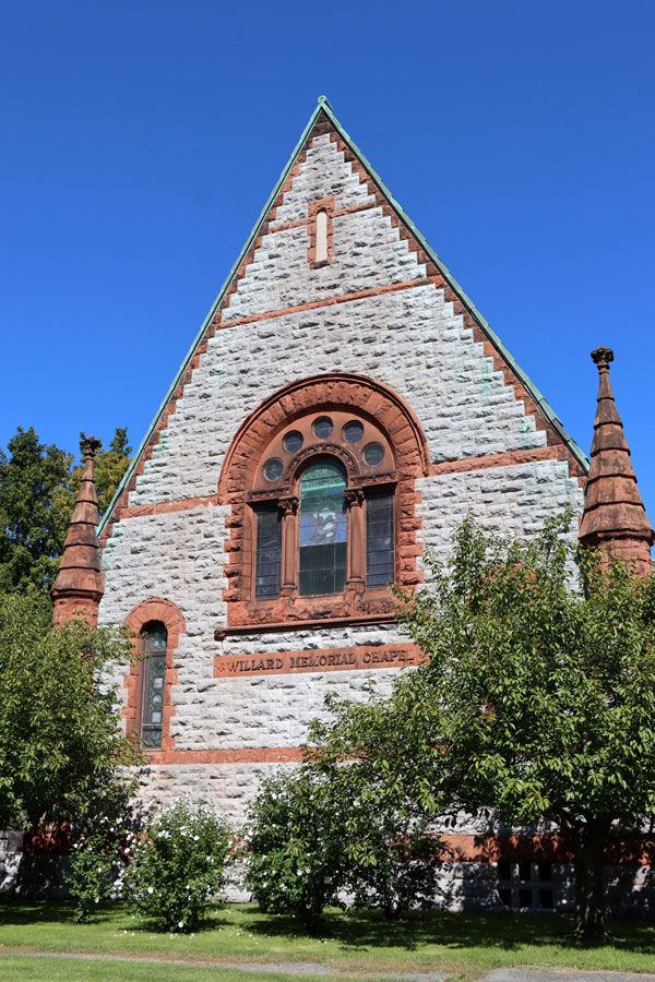 The chapel and adjoining Welch Memorial Building are what remains of the Auburn Theological Seminary, which was established in 1818 as an educational facility that prepared pastors and missionaries. The chapel was built and furnished in a sweet memorial to Dr. Sylvester Willard and his wife by their daughters, between 1892 and 1894.