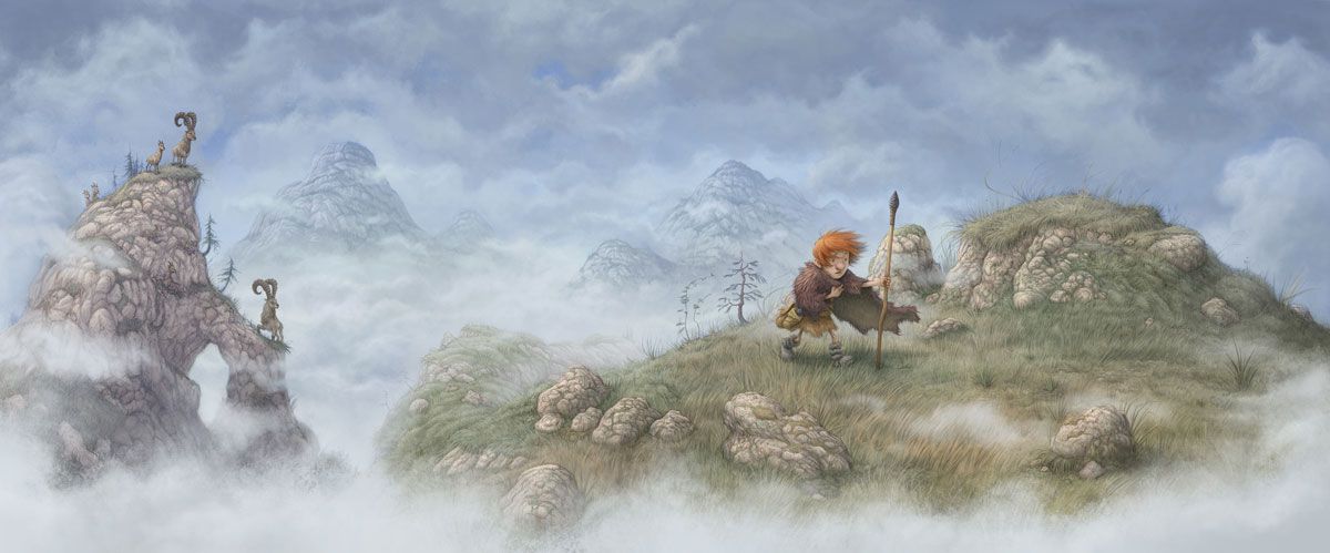 Drawn with cinematic ingenuity, Kline’s illustrations of a child embarking alone on an epic journey through the prehistoric wilderness is told with expressive postures and depictive environments. Using his own explorations into nature as inspiration, Kline also consulted an anthropologist for accuracy while creating this tale, that is newly illuminated by the viewer’s own discoveries each time it is shared.