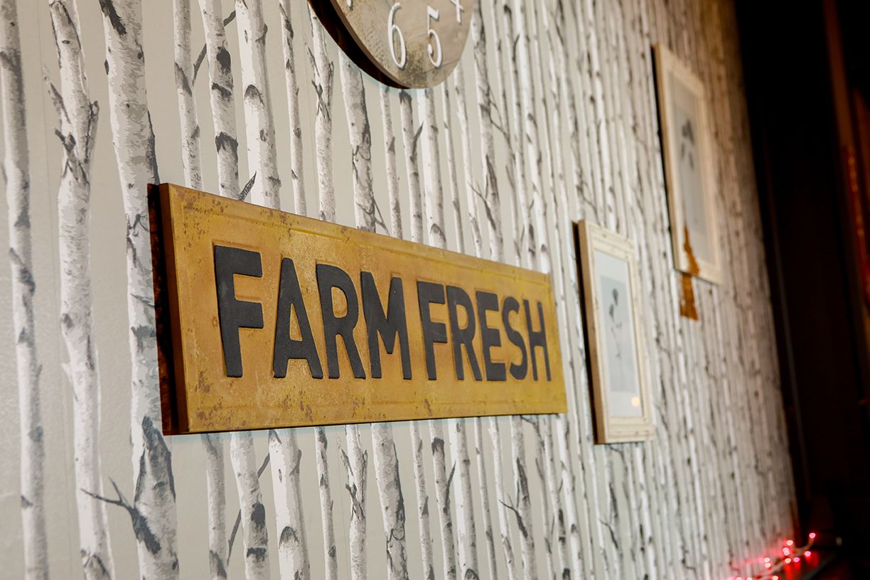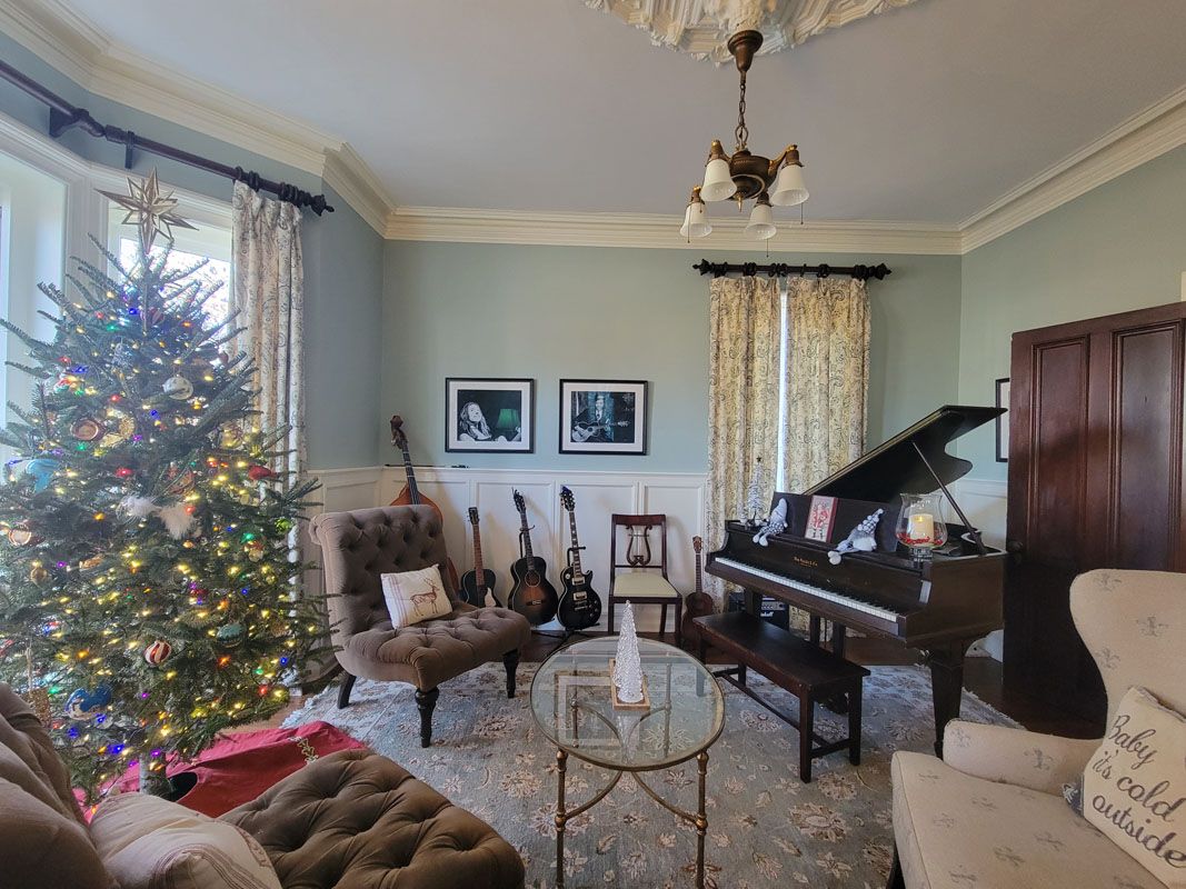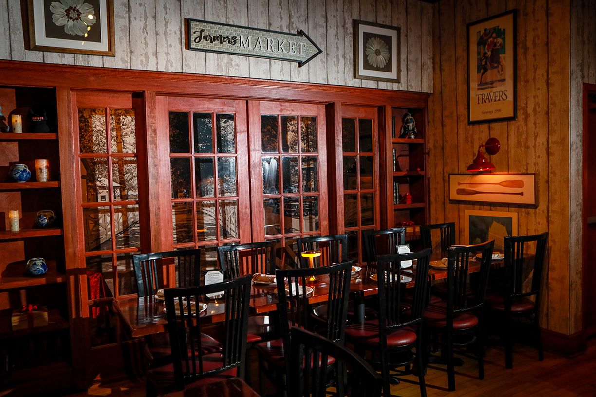 For this visit, we (myself, Chris and Susan) all commented on the beautiful sparkling lights flowing onto Broadway and illuminating the interior– just charming! We were ushered to the back of the restaurant, to the intimate Saratoga Room, where the warmth of polished wood tables, twinkle lights – and the most beautiful track mural - enveloped us in warmth and comfort, making us feel… Welcomed. The privacy was delightful. We don't get to see each other often enough, so it was a joy to have a quiet place where we could share a meal and laugh (loudly at times!) while catching up with each other, of course by the end of the meal, this room was full with other diners and we were on our best behavior!